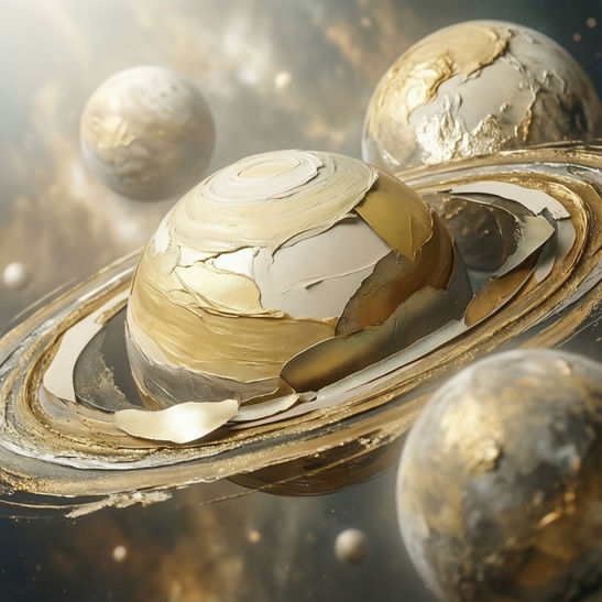 An exploration of the cosmos through abstract mixed media art. This series uses shimmering textures, layered colors, and celestial imagery to evoke a sense of wonder and the mysteries of the universe.